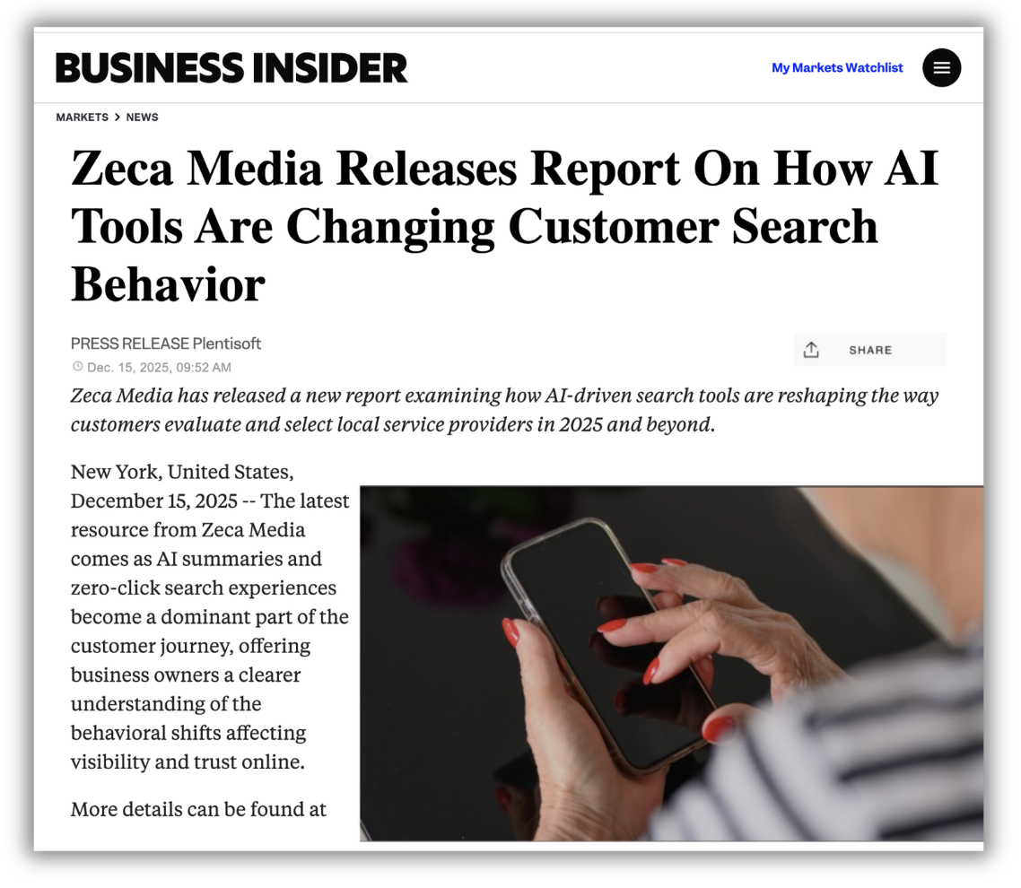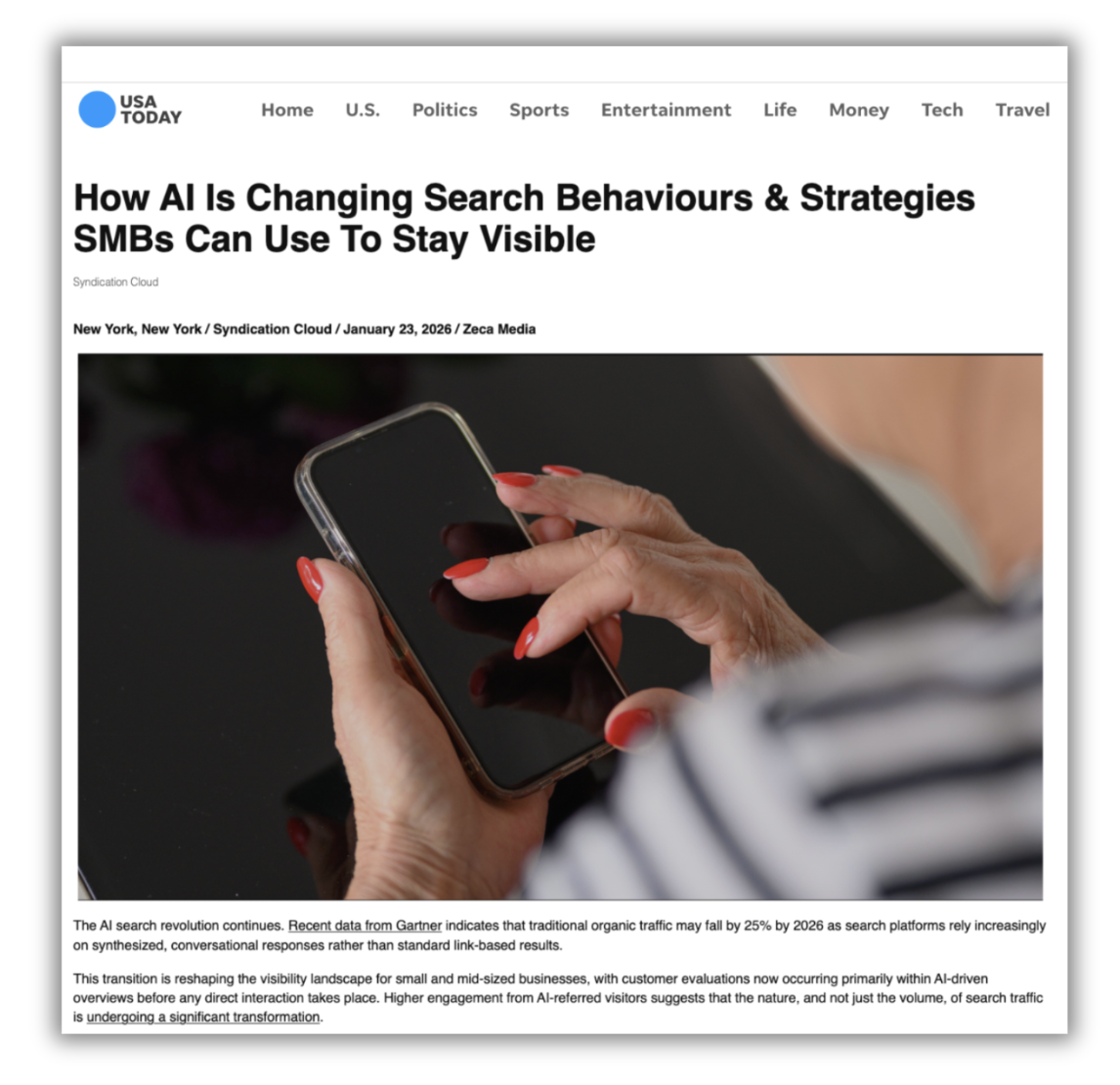 Your business will be published on recognised platforms like USA Today, Business Insider and AP News — creating permanent authority signals that Google and AI systems trust.